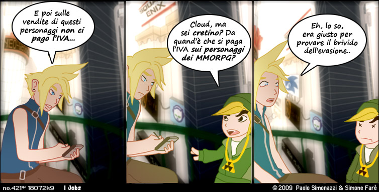 Sul balcone arso dalla calura che Cloud e Link chiamano ufficio, poveri sfigati, si tramano oscure truffe ai danni del fisco.